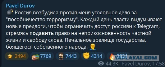 Сегодня стало известно, что ФСБ расследует в отношении основателя популярного мессенджера уголовное дело.