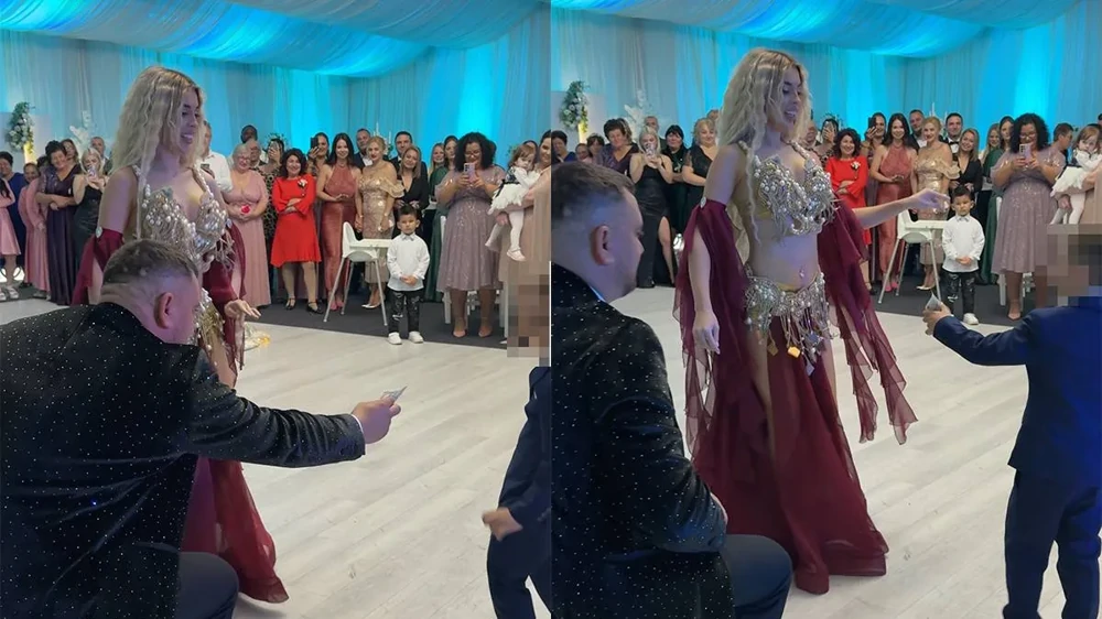 На свадьбе ребёнок по-взрослому решил отблагодарить танцовщицу за выступление.