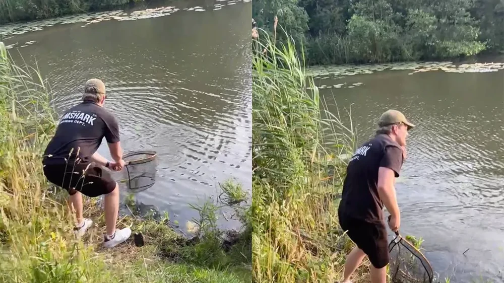 Обычная рыбалка едва не закончилась травмой, когда мужчина пытался достать пойманную рыбу сачком. Рыба так активно барахталась, что вырвала крючок изо рта — и тот с силой отлетел прямо в лицо рыбаку.