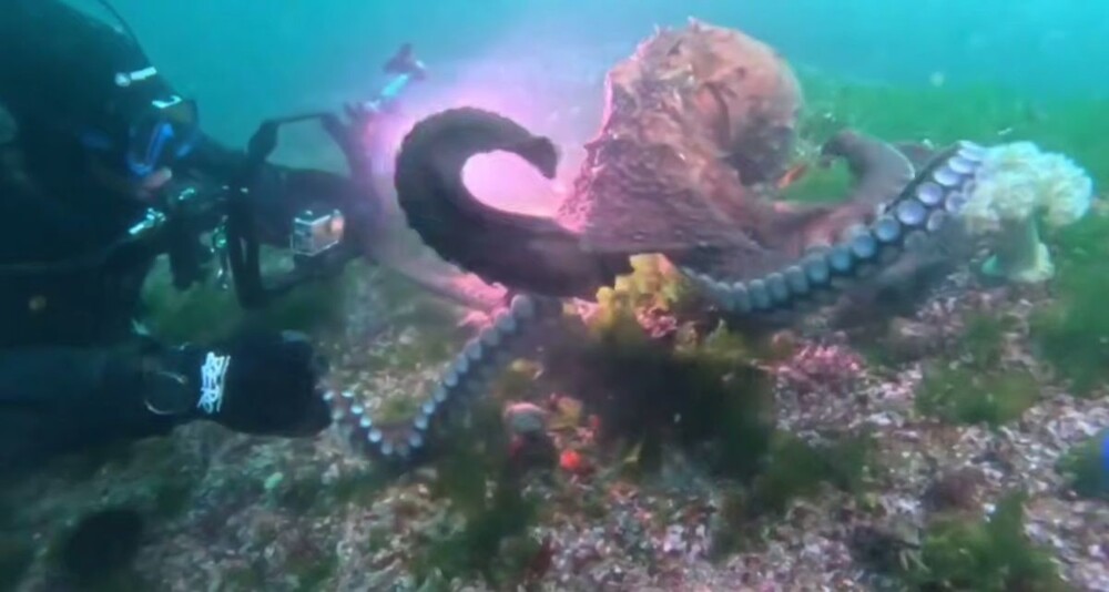 В Приморье осьминогу приглянулась камера мужчины. Морской житель решил забрать её себе.