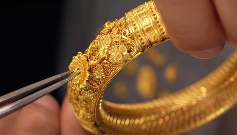 Завораживающий процесс работы китайского мастера над золотым браслетом. Украшение сделано в традиционной технике китайской филиграни.