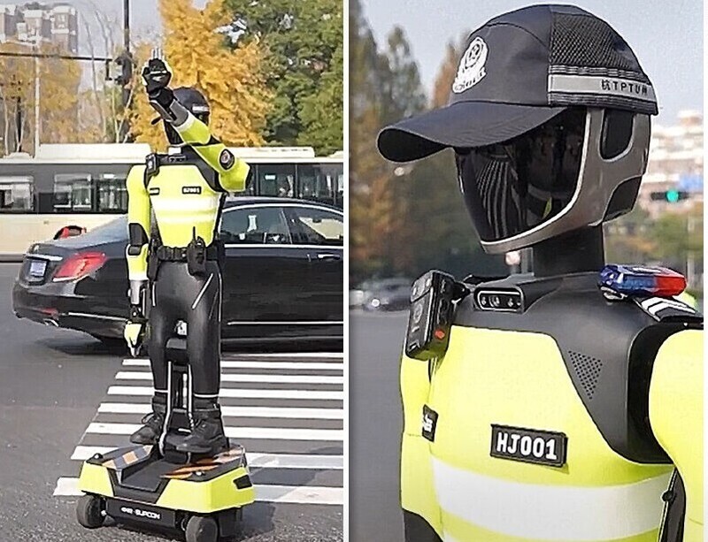 Разработчики говорят, что «робокоп» подаёт сигналы руками, свистит, отслеживает ситуацию вокруг и распознаёт нарушения ПДД с помощью камер кругового обзора.