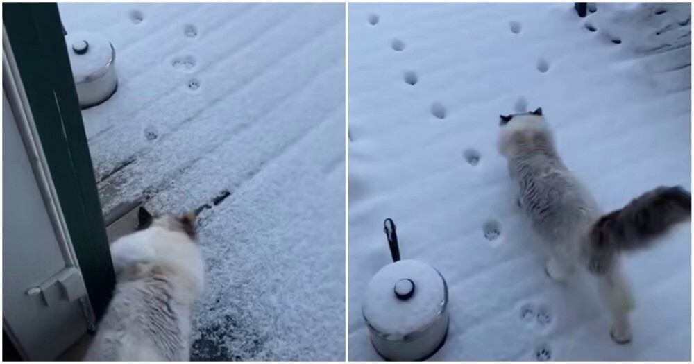 Жительница Канады показала свою домашнюю кошку. Она любит зимние прогулки, но при этом терпеть не может снег.