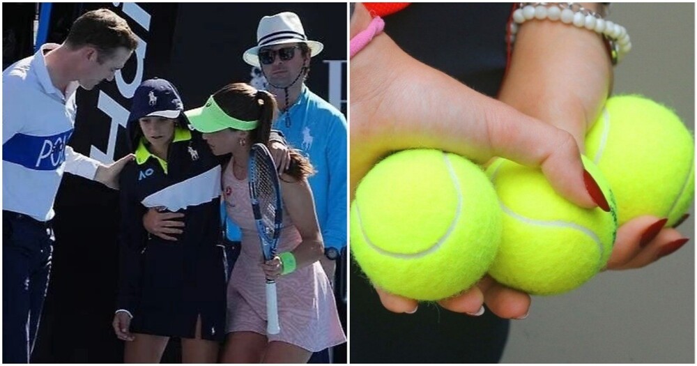 Девочка (бол-гёрл) почувствовала себя плохо и упала во время теннисного матча на Australian Open 2026. Одна из теннисисток помогла девочке добраться до прохладного места в тени.