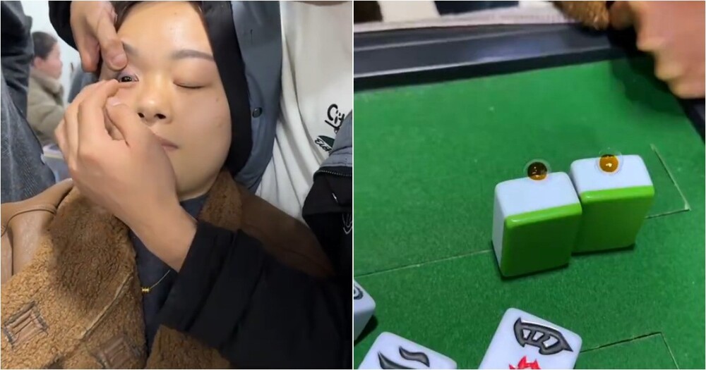Девушка заранее закинула в карман таблетки, чтобы выпить их за обедом. В нужный момент, не глядя, закинула всё в рот и запила водой.