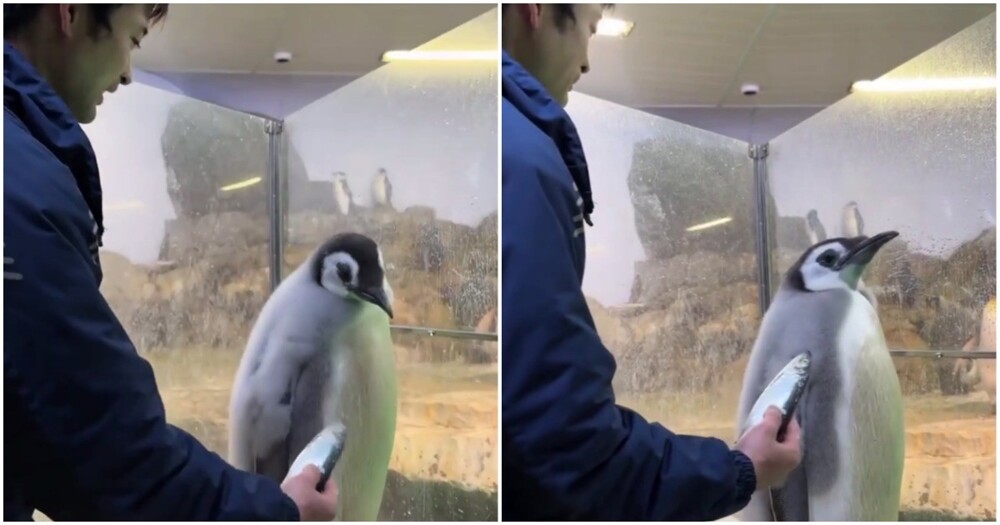 Пингвин, которому исполнилось всего четыре месяца, продемонстрировал характер. Птенцу не понравилась рыбка, которую ему принёс смотритель.
