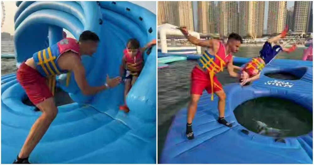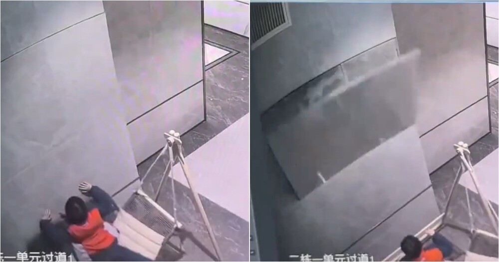 Маленький ребёнок в Китае развлекался на самодельном гамаке в комнате. Во время игры плитка откололась и упала на него.