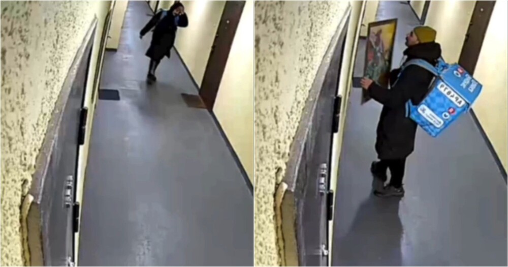 Курьер службы доставки настолько впечатлился картиной, которая висела в подъезде, что решил забрать её с собой, считая это «вознаграждением» за свою работу.