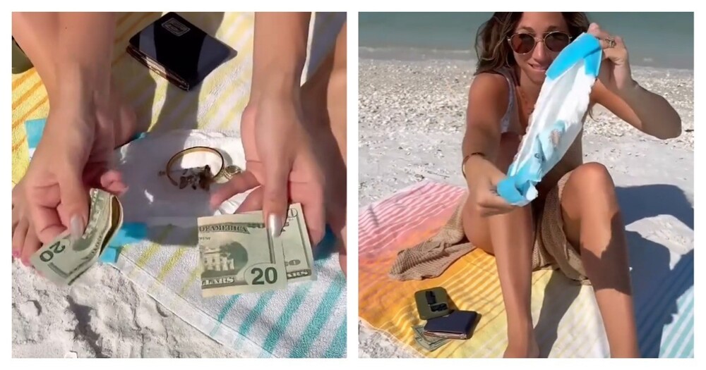 Женщина показала нестандартный способ сохранить мелкие ценные вещи в безопасности на пляже. Для этого понадобится обычный подгузник и... сироп.