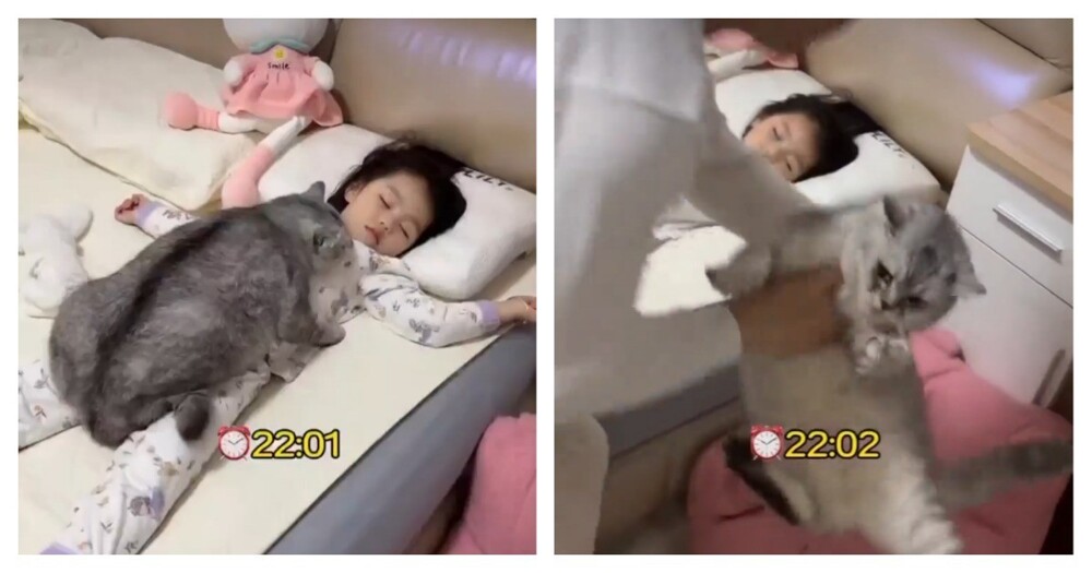 Упитанный домашний кот решил вздремнуть на кровати хозяйки. Наглядное доказательство того, что только упорным трудом достигаются победы.