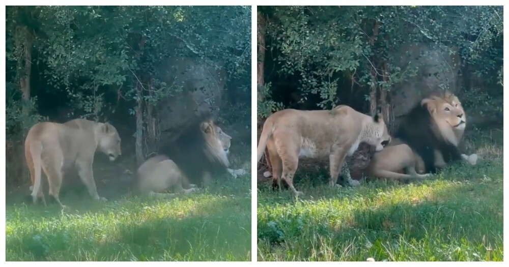 Взаимоотношения животных похожи на человеческие. Взять хотя бы эту львицу. Она слегка укусила своего льва за попу и убежала.