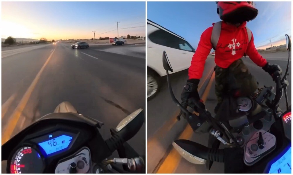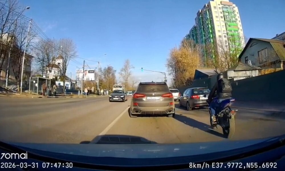 В северной части Индии мотоциклист столкнулся с неожиданной преградой на узкой горной дороге: два яка, сражающиеся друг с другом, полностью перегородили путь.