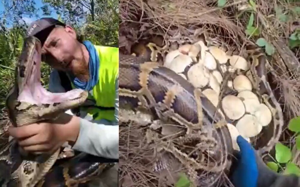 В Эверглейдс, Флорида, охотники за инвазивными видами обнаружили два гнезда бирманских питонов с примерно 120 яйцами. Взрослые змеи и яйца были изъяты, чтобы предотвратить массовое размножение.