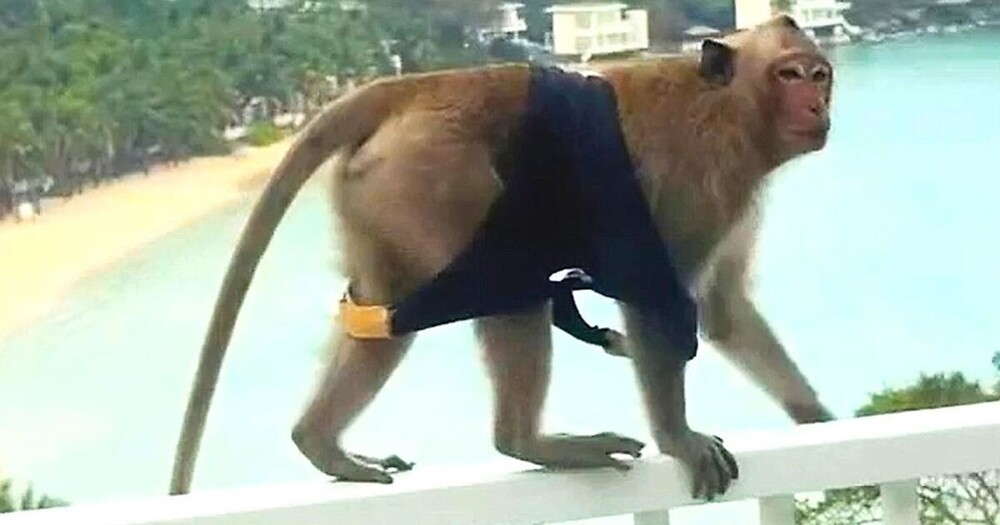 В одном из курортных районов Азии отдыхающие сняли на видео, как несколько наглых обезьян ворвались на балкон гостиничного номера, вытащили личные вещи и начали примерять их на себя.