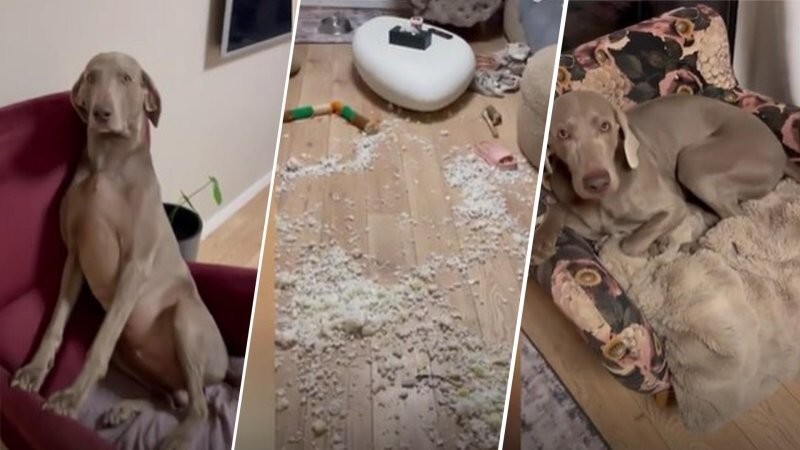 В одном доме несколько собак полностью разорвали кровать, оставив после себя огромный беспорядок. Такое поведение часто связано с избытком энергии и скукой животных.