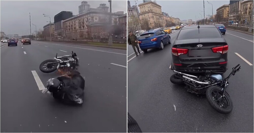 На видео показан момент, когда мотоциклист не справился с управлением на мокрой дороге и влетел в стоящую машину. Пользователей сети тронула реакция владельца авто: он спокойно подошёл к пострадавшему, поинтересовался его состоянием и пожал руку.