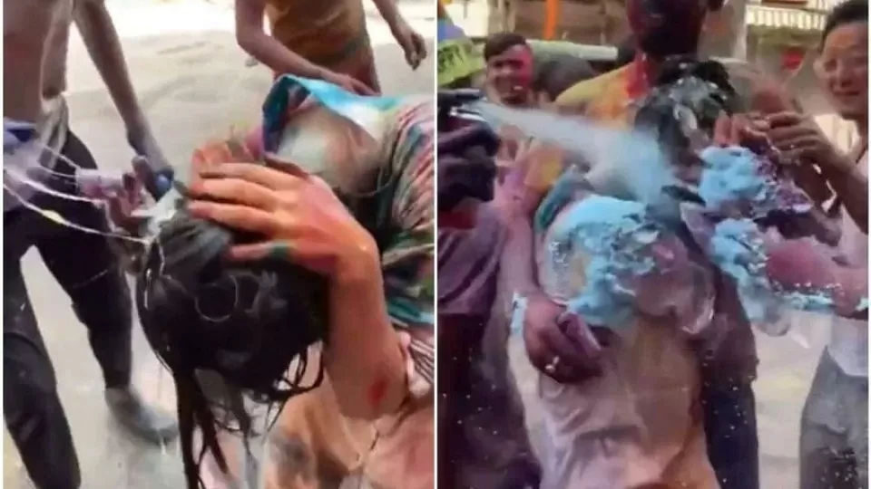 22-летняя японская туристка, оказалась облитой краской во время празднования Холи в Индии. Инцидент произошёл несмотря на её попытки отойти. Холи — традиционный весенний фестиваль, во время которого участники кидаются краской и порошками ярких цветов.