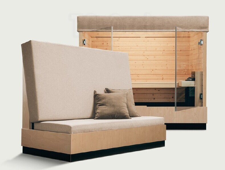 Немецкая компания выпускает домашнюю сауну, которая легко превращается в диван. Предмет мебели трансформируется в сауну всего за 60 секунд.