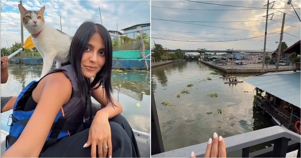 Туристка в Бангкоке попробовала уникальное развлечение — каякинг вместе с котами. Во время экскурсии по каналам пушистые спутники могут сидеть рядом, забраться на плечи или просто уютно расположиться на лодке.