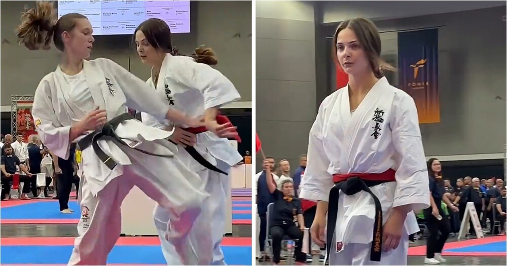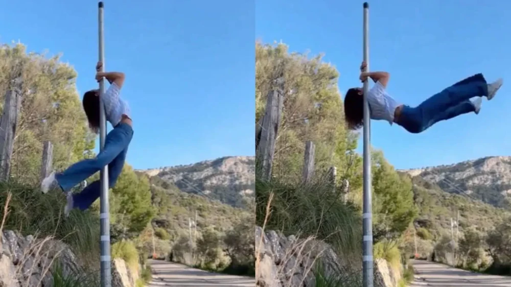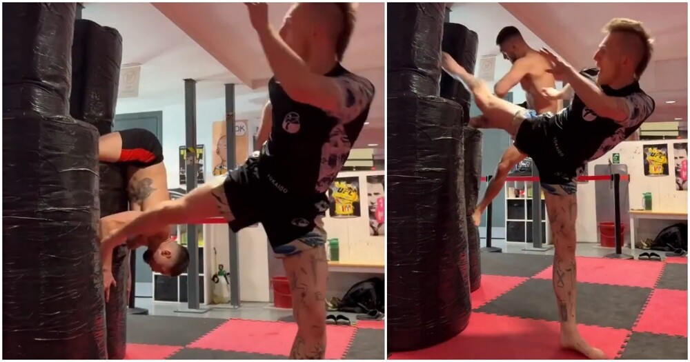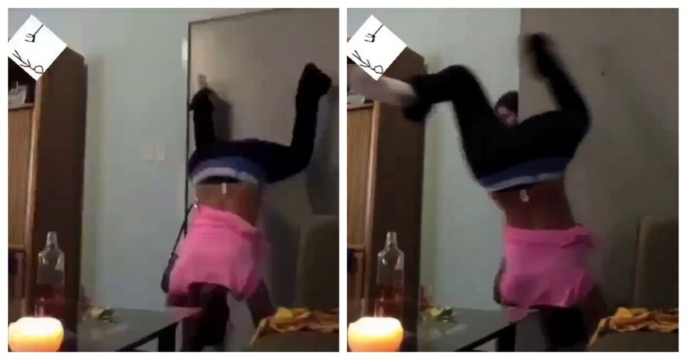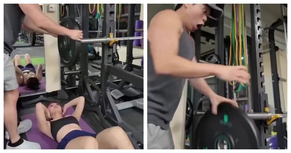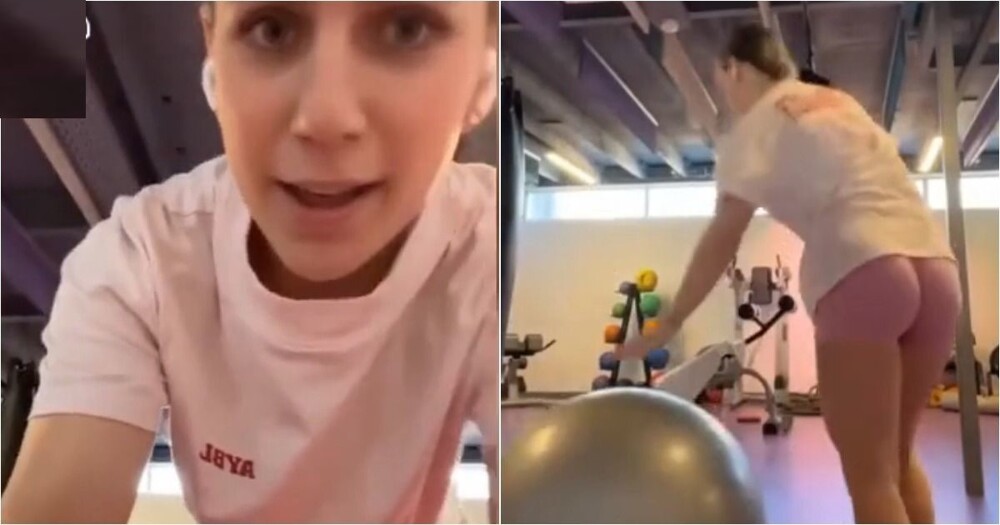 Девушка воспользовалась редким моментом, когда зал оказался полностью свободен, чтобы спокойно потренироваться и записать видео. Но даже в такой обстановке не всё идёт строго по плану — иногда тренировки приносят неожиданные моменты.