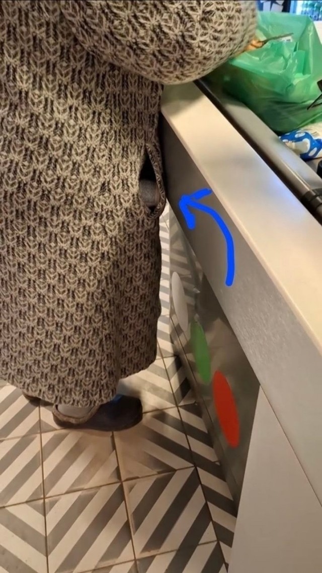 Автор фото некоторое время следил за старушкой. В молочном отделе она нисколько не сомневалась положила несколько бутылочек йогурта в на удивление глубокие(?) карманы своего пальто и спокойно прошла на кассу,забыв оплатить этот полезный напиток.