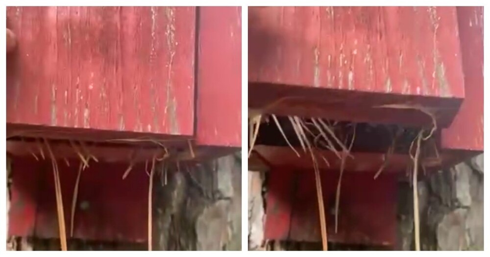 Женщина решила заглянуть в скворечник на дереве. Ей совсем не понравилось то, что она там увидела