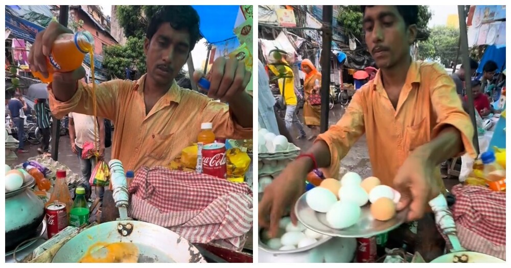 Американский турист снял на видео уличного повара в Индии, который жарит омлет не на масле, а на газировке — по выбору кола, фанта или спрайт. В рецепт также входят кусочки печенья. Необычное сочетание вызвало удивление у зрителей, а прохожие, несмотря на любопытство, пробовать «газированный омлет» так и не решились.