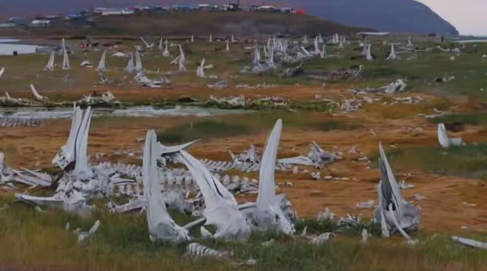 Дрон запечатлел китовое кладбище возле поселка Янракыннот на далёкой Чукотке. Это место считается одной из самых необычных и ярких достопримечательностей на полуострове.