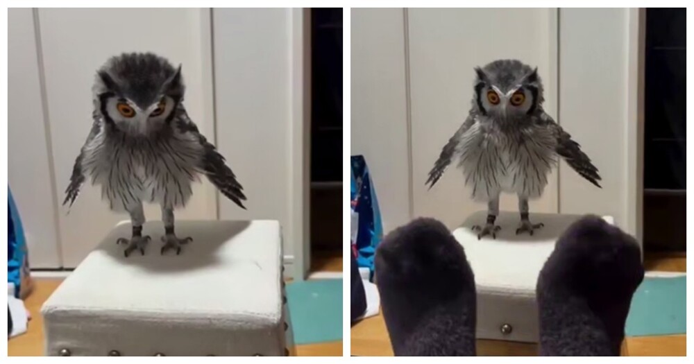 Казалось бы, что может напугать сову? Оказывается, самый обычные носки на ногах!