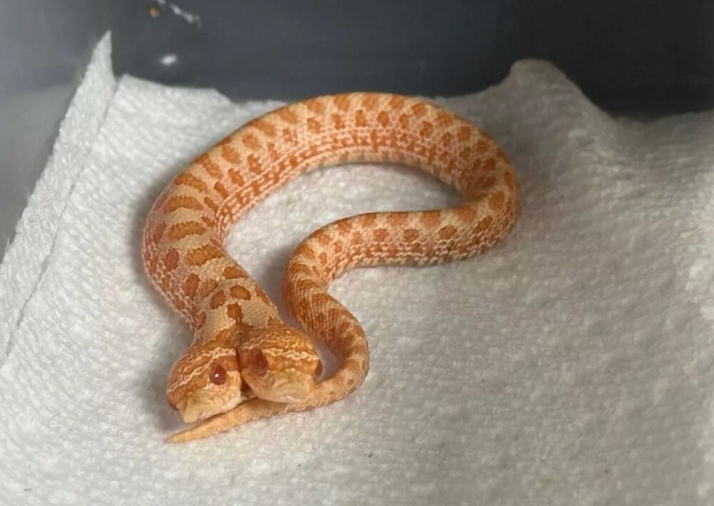 У 49-летней американки Энн-Кристин Сван появился уникальный питомец. На свет появилась редкая змея с двумя головами.