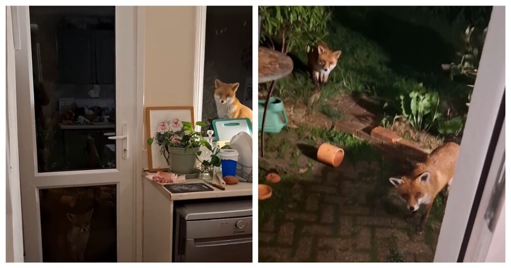 К мужчине заглянули в гости две лисы. Они уселись у входа в дом и стали ждать момента, когда откроется дверь и их чем-нибудь угостят.