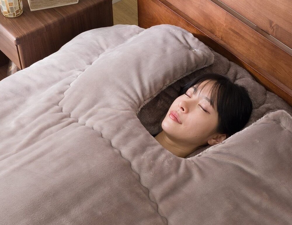 Японцы выпускают одеяла со специальным вырезом для головы. Благодаря ему человек может сколько угодно ворочаться и всегда оставаться укрытым.