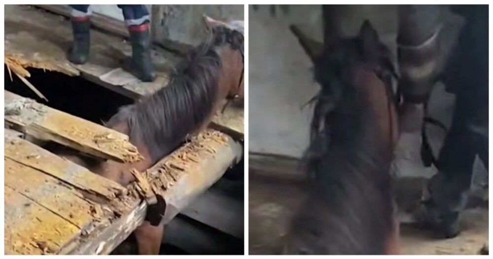 Спасатели пришли на помощь коню в Иркутске. Жеребца зажало досками в заброшенном здании.