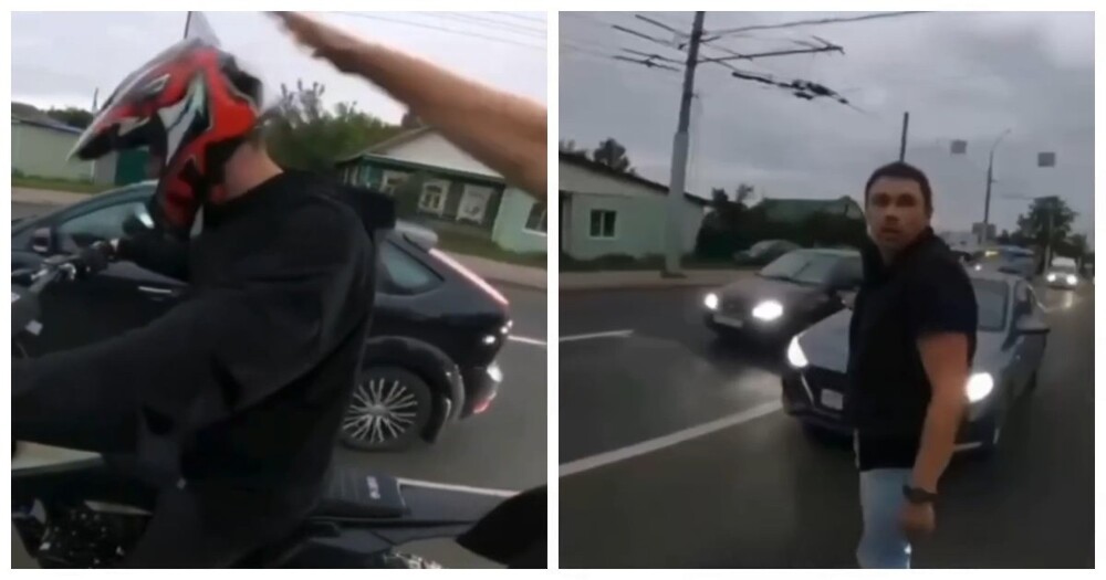 На дороге вспыхнула драка между взрослыми и подростками на питбайках.