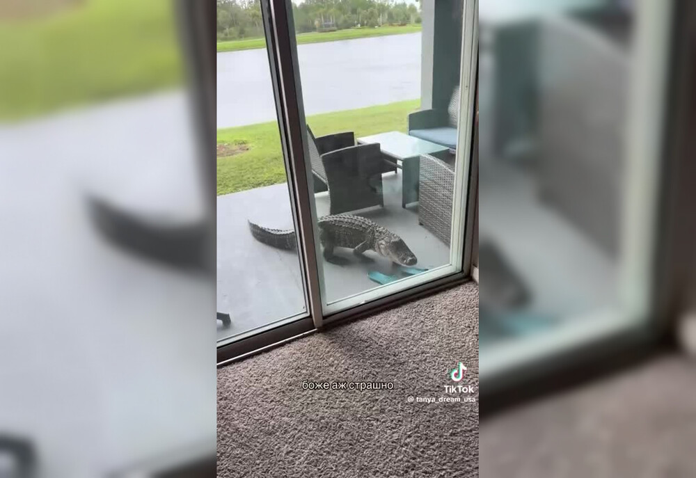 Неожиданного гостя — настоящего аллигатора — сняла на видео жительница частного дома. Вместо паники она с улыбкой направила животное обратно к воде.