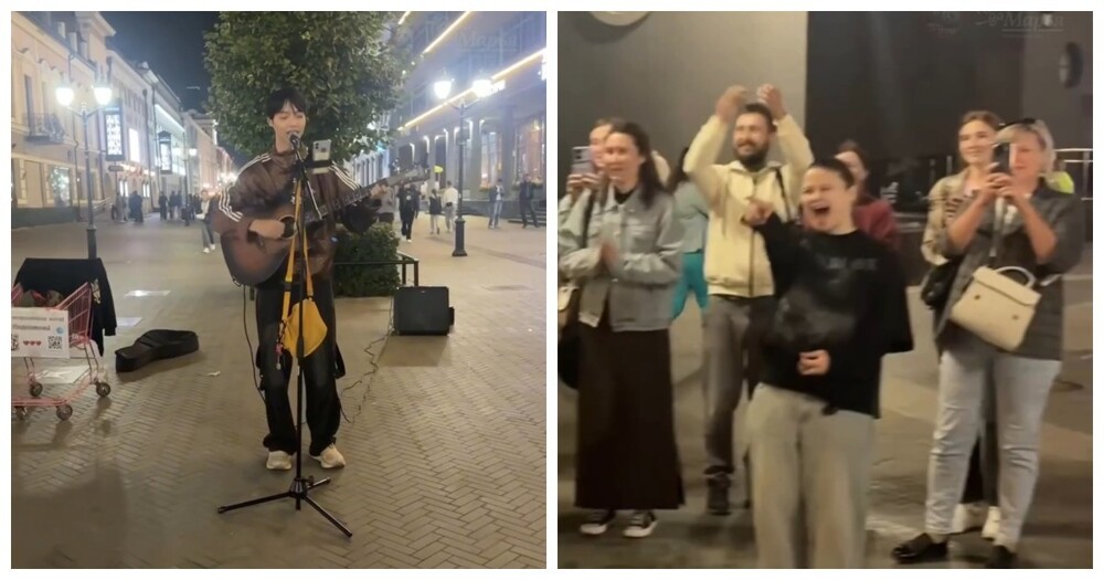 На одной из улиц Казани девушка, выступавшая с гитарой, позволила туристу из Китая исполнить песню. Сначала его выступление выглядело неуверенно, но вскоре парень раскрылся и удивил собравшихся своим голосом и эмоциональной подачей.
