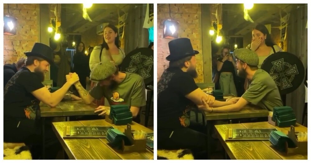 В одном из баров Санкт-Петербурга мужчина повредил себе руку во время поединка по армрестлингу. Момент попал на видео.