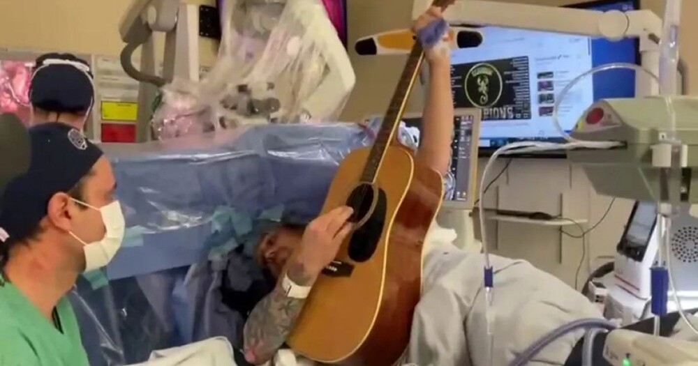 44-летний Пол Уэлш-Далтон страдал от афазии и головных болей. После приступа его госпитализировали. Мужчине диагностировали олигодендроглиому — редкий вид злокачественной опухоли головного мозга. Во время пятичасовой операции хирурги удалили 98% 4-сантиметрового новообразования. Всё это время отец пятерых детей играл на гитаре, чтобы врачи были уверены в сохранности жизненно важных участков.