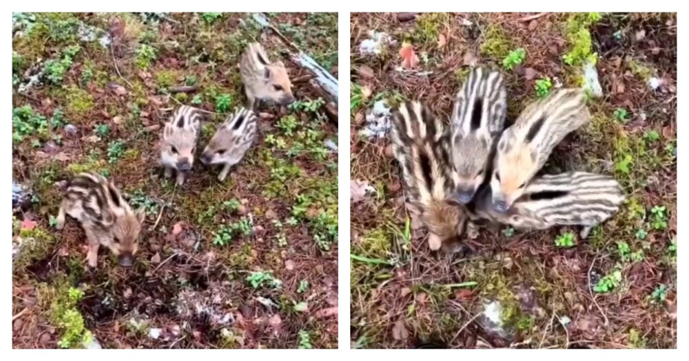 Мужчина встретил в чувашском лесу поросят. Автор видео не испугался возможного появления мамы и позволил малышам подойти.