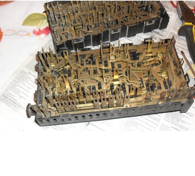 Вот такой блок предохранителей был на фольксвагенах в 90х годах. По сути это многоуровневая печатная плата с воздушным изолятором. На фото он располовинен.