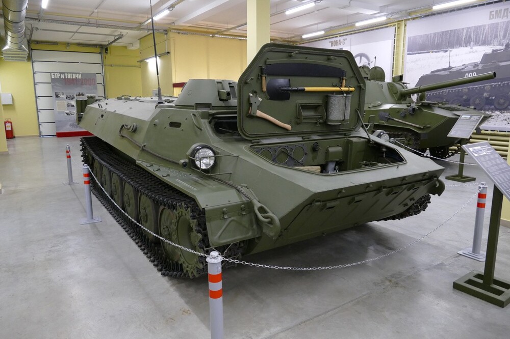 Единственный известный сохранившийся экземпляр минного заградителя НГ52П6 на шасси МТ-ЛБ, ныне находящийся в коллекции Музея отечественной военной истории