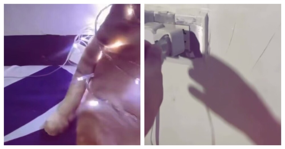Хозяин кота решил не покупать ёлку к Новому году. Вместо дерева он украсил своего питомца.