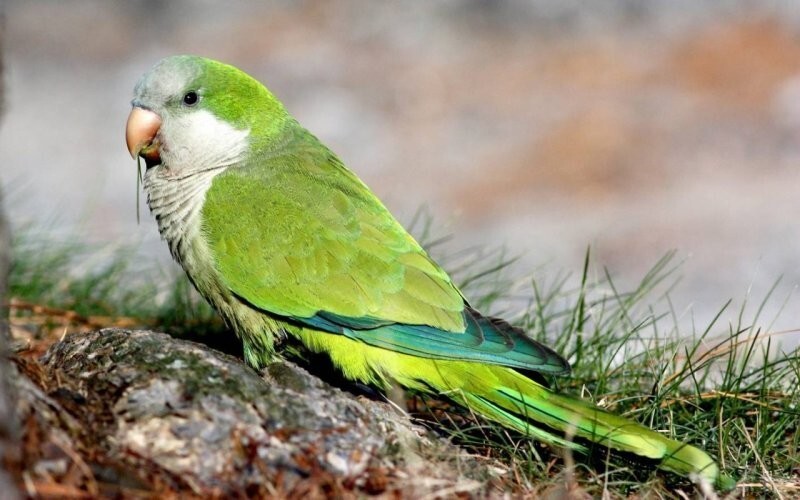 Зелёный попугай подружился с курицами и петухом. С кем поведёшься, от того и наберёшься.