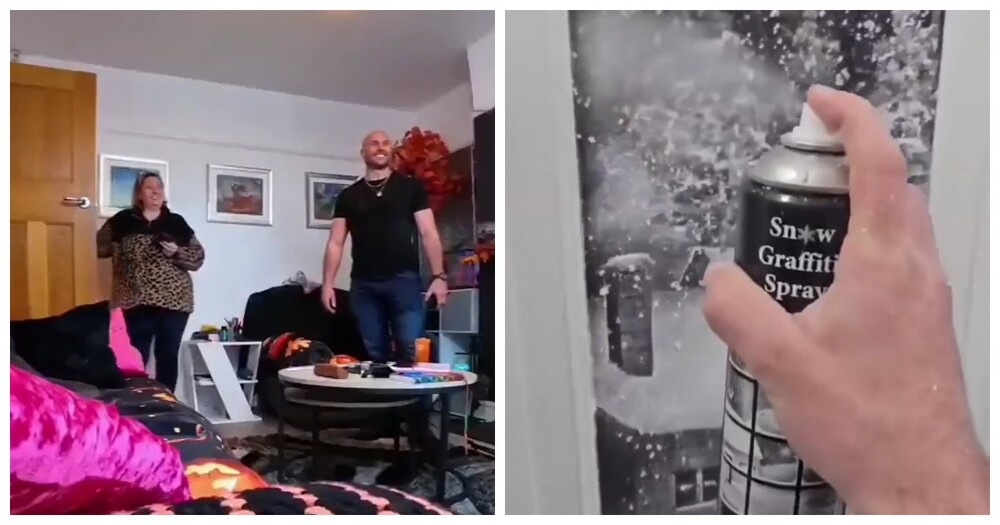 Парень продемонстрировал оригинальный способ создания праздничного настроения: с помощью искусственного снега он нарисовал на окнах сказочные зимние картины.