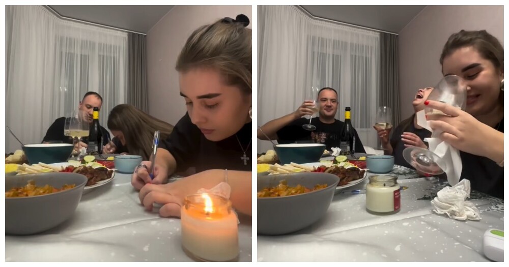 Вся семья собралась за столом встречать Новый год и решила открыть шампанское ровно под бой курантов. Но в самый ответственный момент пробка сломалась — куранты уже отзвенели, а бутылка так и осталась закрытой.