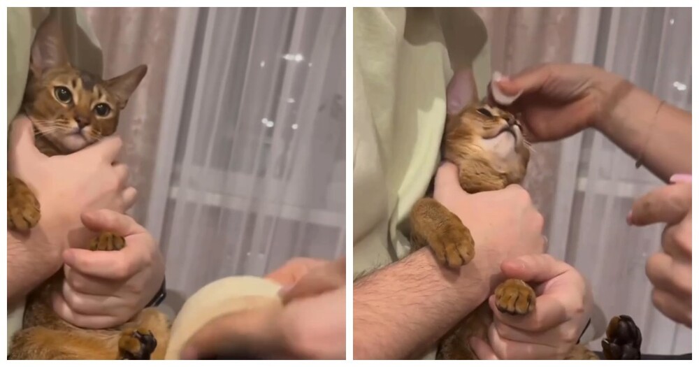 На видео хозяйка дала коту самому решать, с чем играть — верёвкой или пластиковой трубкой.