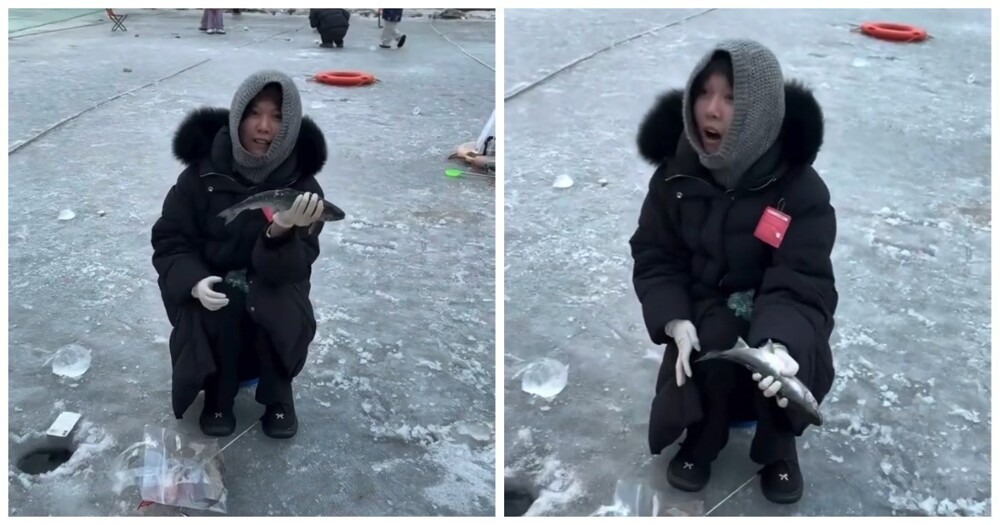 Неосторожная женщина лишилась своего смартфона на зимней рыбалке. Тот самый момент, когда рыбалка не задалась.