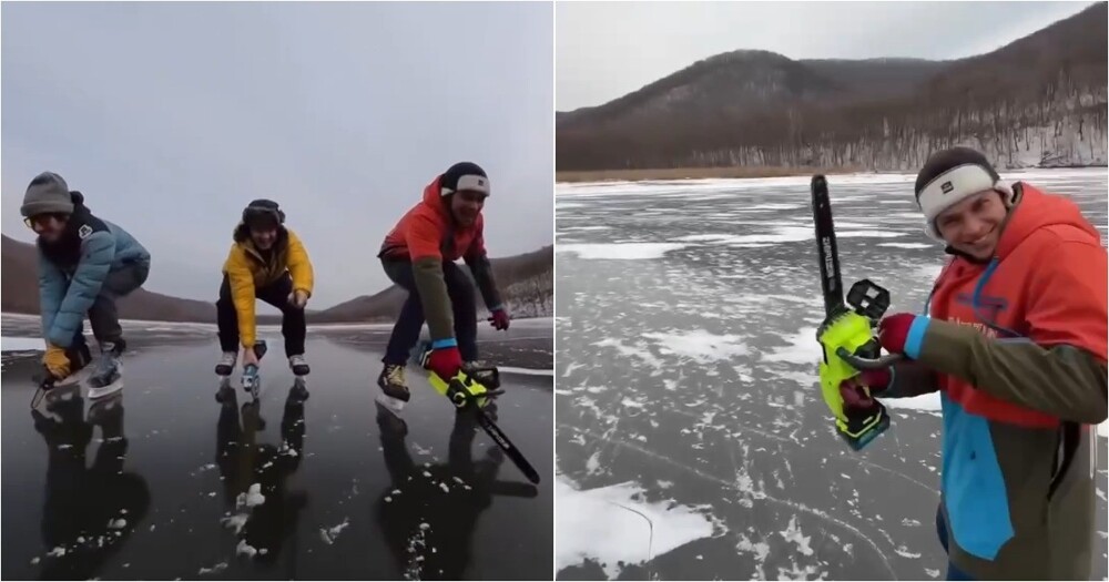 Во Владивостоке мужчины катались на коньках по замёрзшему водоёму, одновременно распиливая лёд перед собой болгаркой. Экстремальное развлечение обошлось без серьёзных последствий — пострадал лишь средний палец одного из участников. И всё же этот случай наглядно объясняет, почему мужчины в среднем живут меньше.