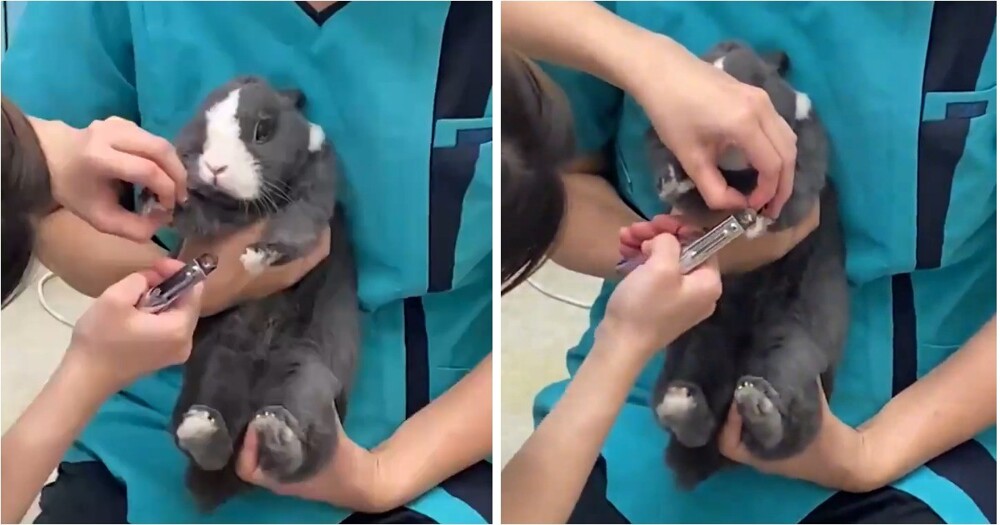 Питомец терпеливо переносит процедуру стрижки когтей: во время подстригания его лапки заметно дрожат от страха. Ветеринары и хозяева отмечают, что такие реакции у кроликов обычны, и важно действовать осторожно, чтобы животное не испугалось слишком сильно.