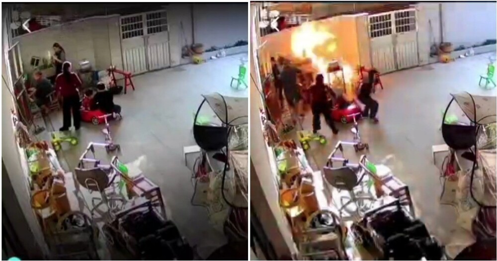Мужчина разбивает кувалдой кувшины, лежащие у голов людей. Подростки участвуют в опасном трюке наравне со взрослыми.